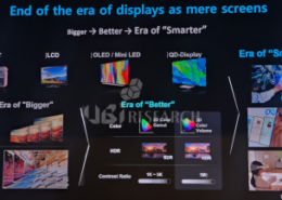 지난 주 8월 6일부터 9일 사이 개최된 K-Display 2025의 비즈니스 포럼에서 삼성 디스플레이의 조성찬 부사장은 ‘Display paradigm shift with AI’를 주제로, 디스플레이 산업이 CRT–LCD–OLED의 기술 진화를 거쳐 “Bigger에서 Better, 그리고 다음 단계인 ‘Era of Smarter’로 이동하고 있다”고 발표했다.